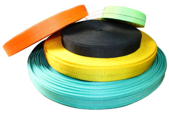 Fabricamos fitas de poliéster em larguras que variam de 35mm à 120mm.